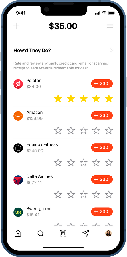 In just seconds, turn feedback into cash back. Tap to rate. Tap to record. Each review earns you cash back.